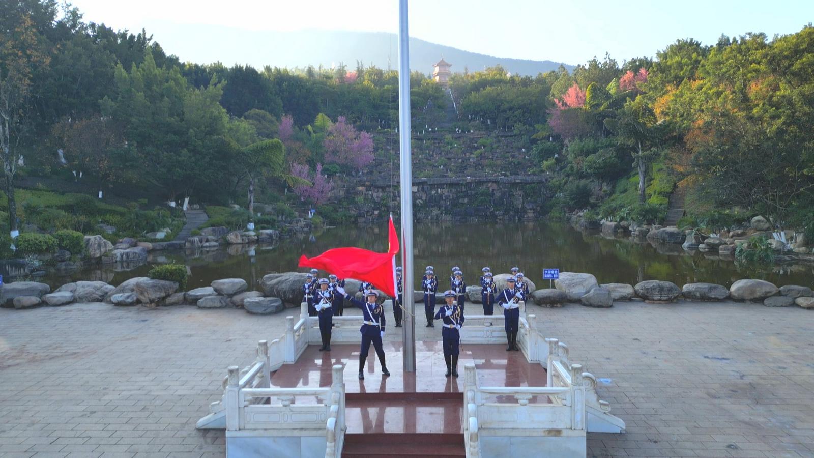 上午9时整,升国旗仪式正式开始。伴随着雄壮的《义勇军进行曲》,鲜艳的五星红旗冉冉升起,全体人员肃立注目,齐声高唱国歌,庄严的氛围中洋溢着对新一年的美好期盼。