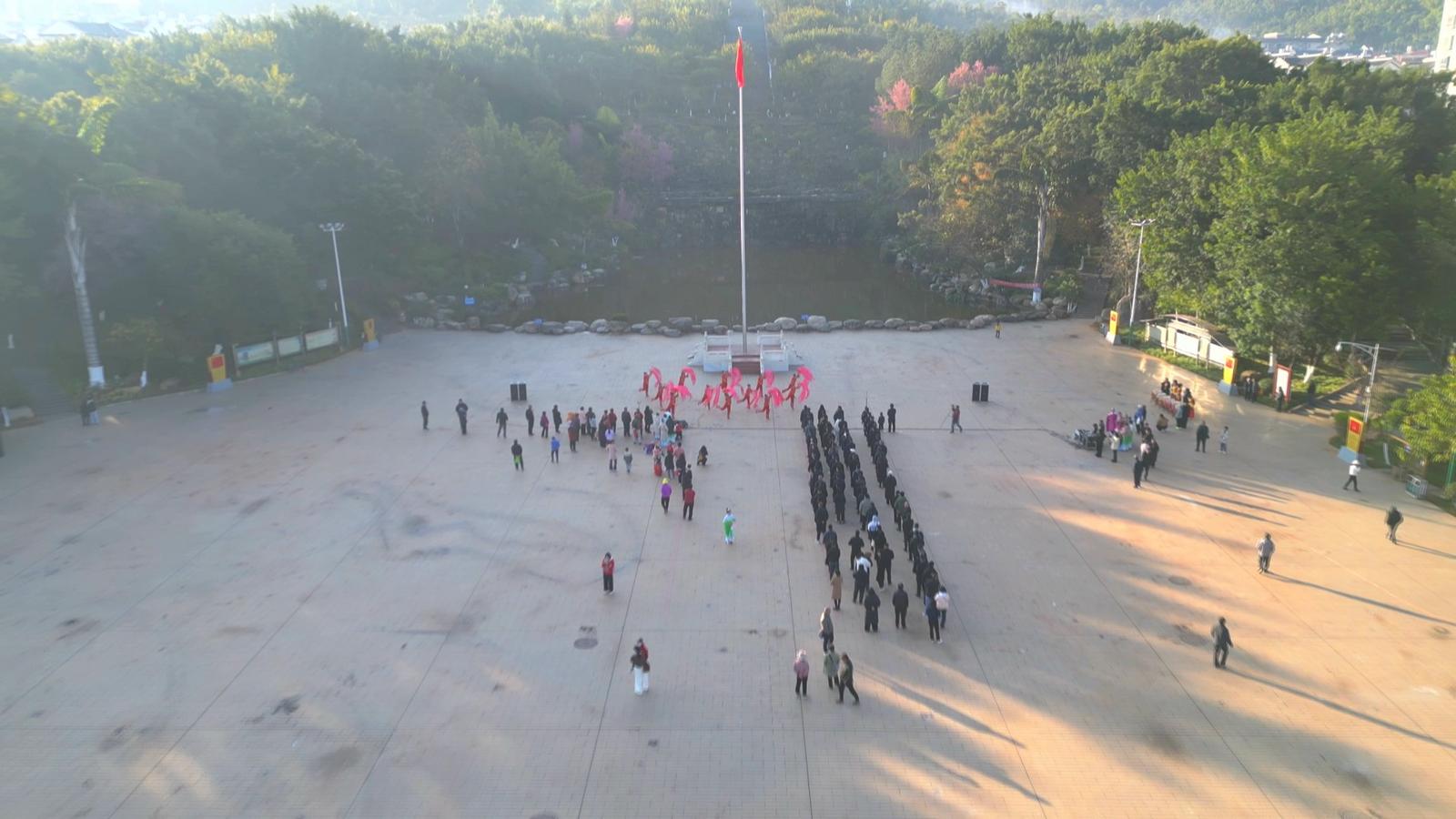 升旗仪式后,现场举行了精彩的文艺演出。县星光鼓舞战队表演了气势磅礴的《精忠报国》,以铿锵鼓点展现爱国情怀;县老体协文艺队先后献上《红红火火大中国》和具有地方特色的《崴灯》两个节目,以欢快的节奏和优美的舞姿,传递出对新平发展、祖国昌盛的真挚祝福,展现了人民群众积极向上的精神风貌。