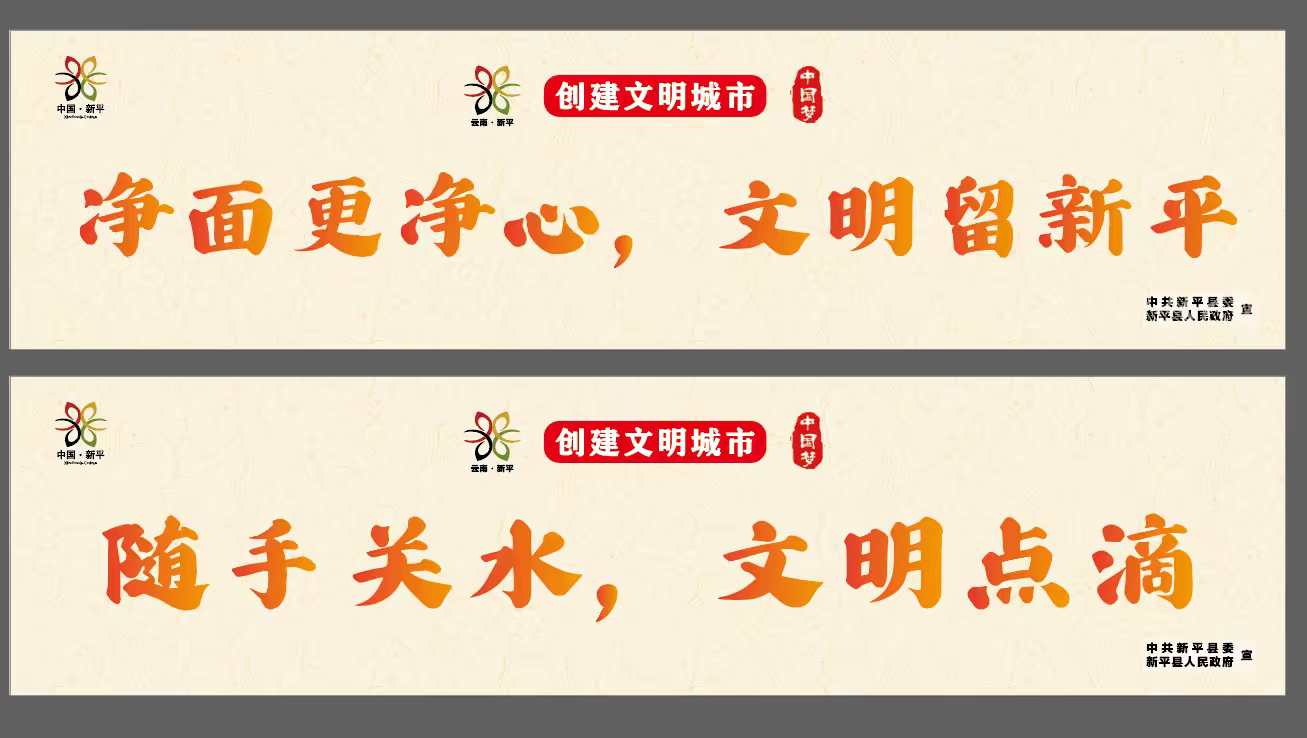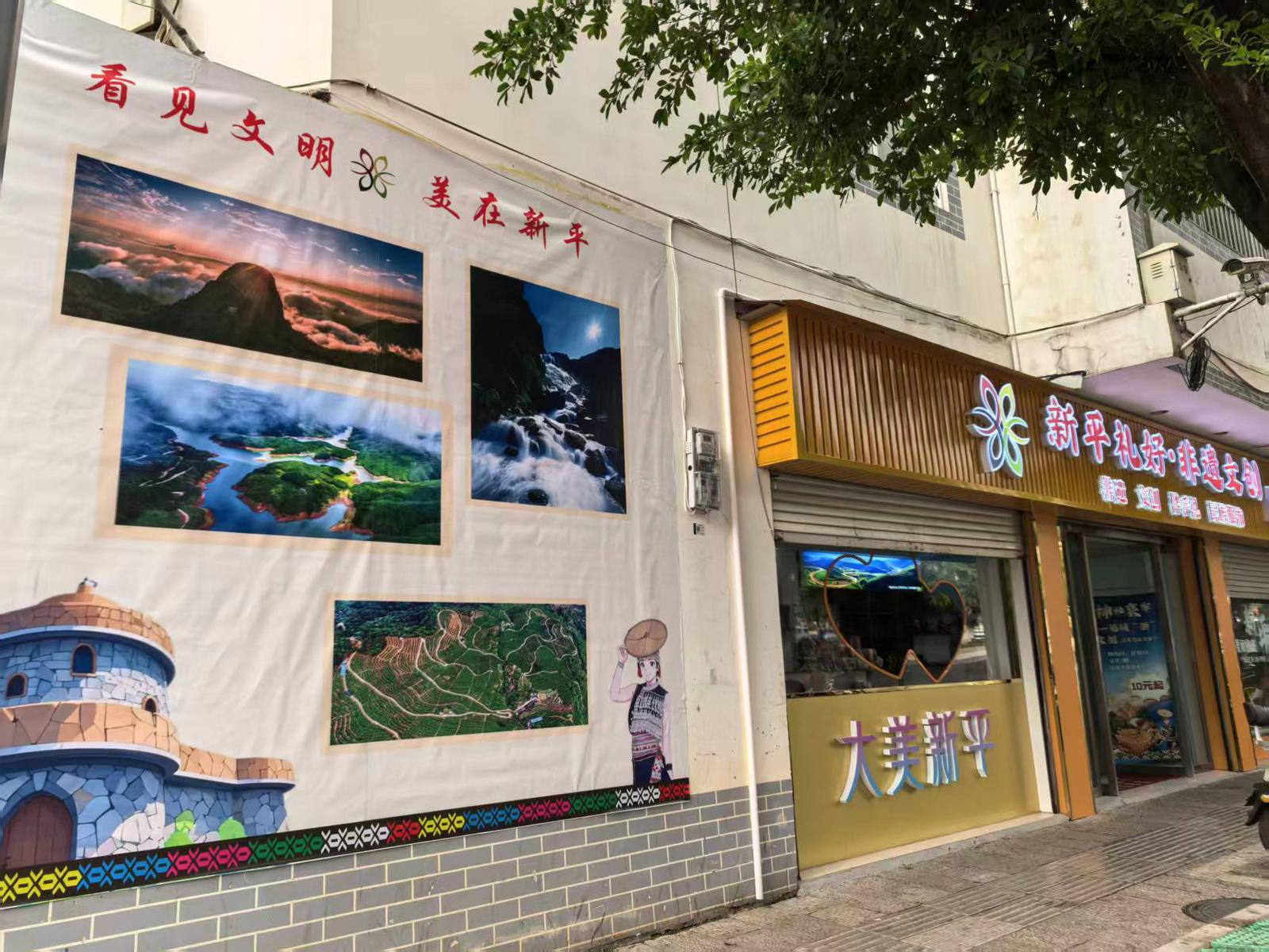 全县文艺家协会骨干会员围绕主题开展文艺创作,精选一批书法、美术、摄影作品,设计生产民族服饰、帆布包、扇子、冰箱贴等文创产品,在人流量大的路段开设非遗文创产品形象店。制作书法、绘画、摄影作品,在新平县文化馆小花园舞台、锦秀社区、工人文化宫及溪湖公园等区域,打造公共文化空间。在全县44个洗手台、26个公共卫生间(含旅游卫生间)等公共区域粘贴120余张文明温馨提示,指导食堂、会场等公共空间布设书画作品增加文化氛围。
