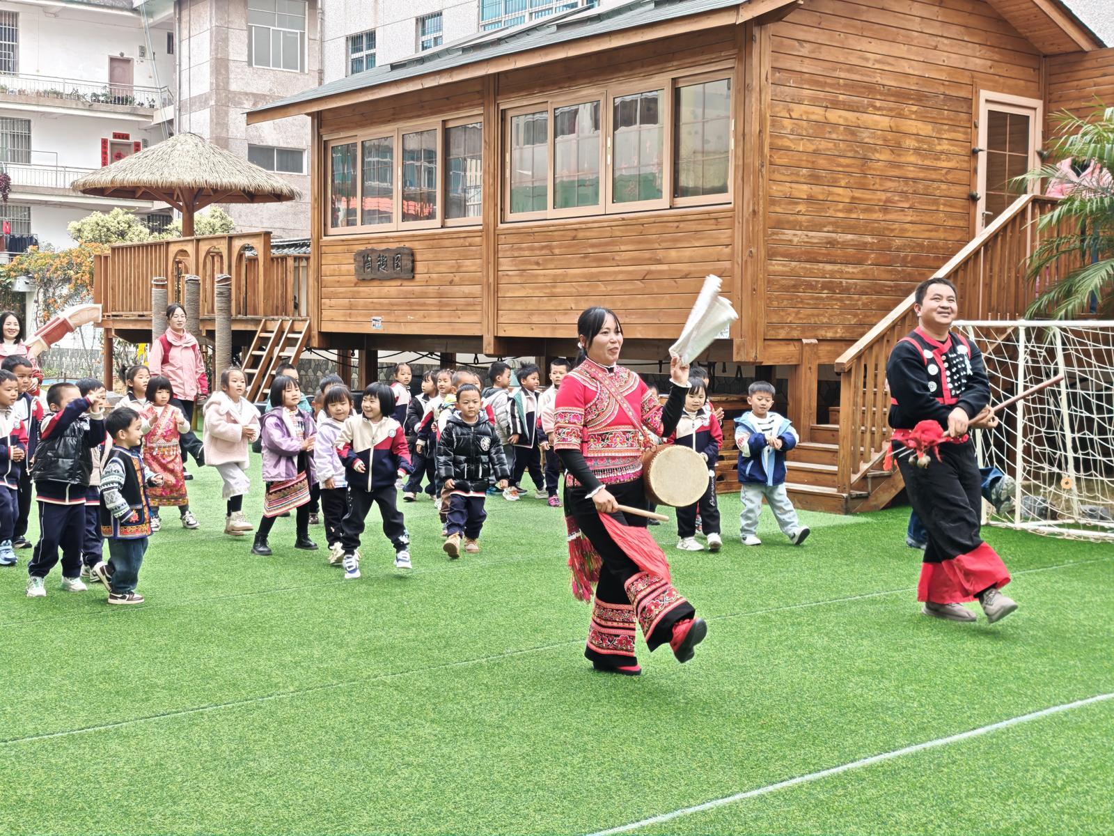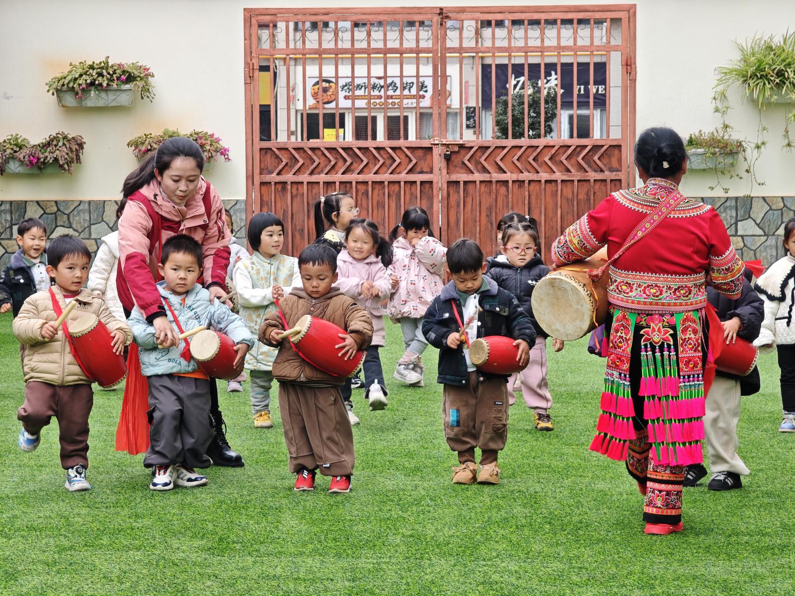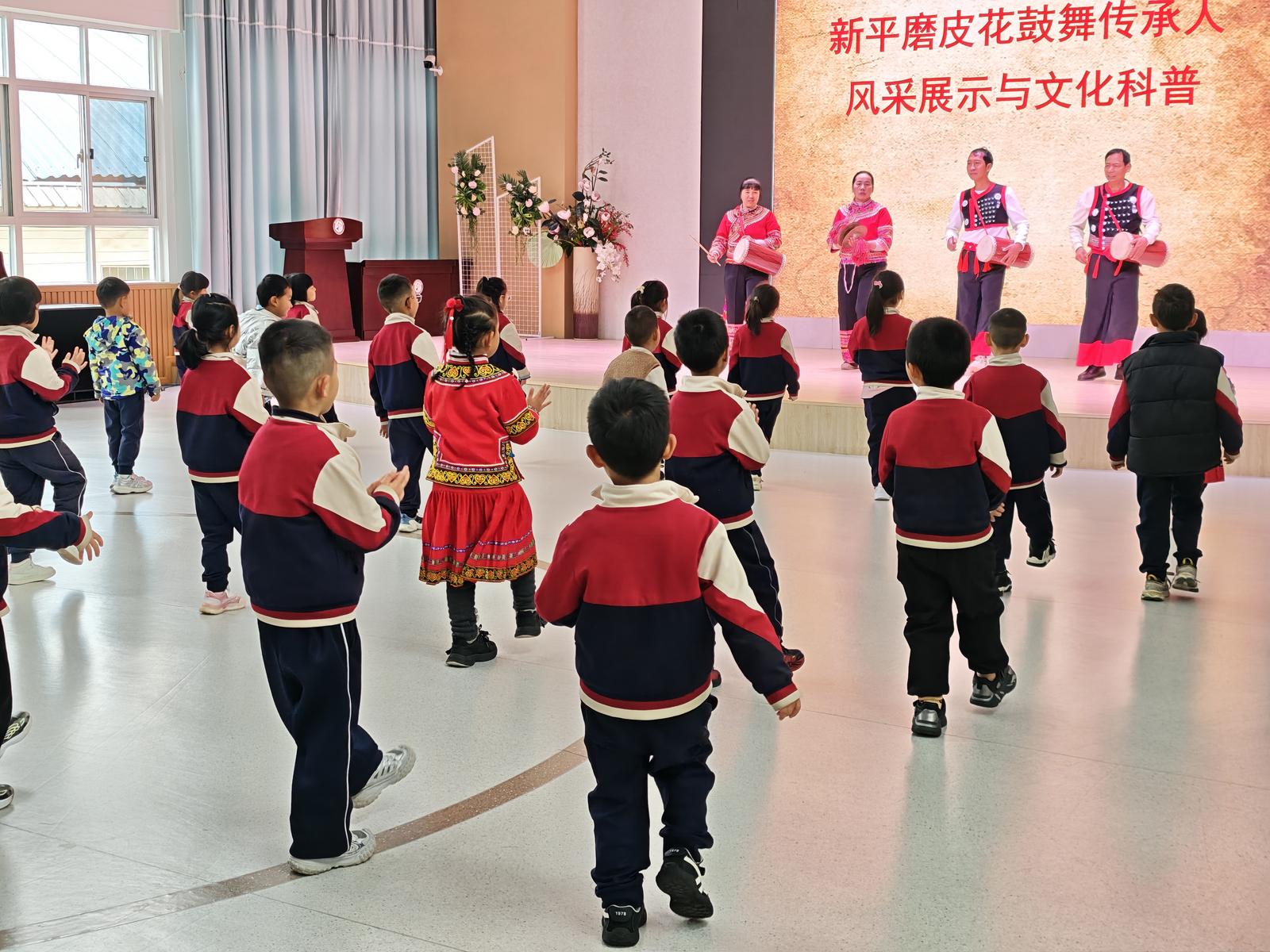 1月13日,新平县平甸乡联合县第二幼儿园开展“擂响非遗鼓韵 舞动灿烂童心”省级非遗磨皮花鼓舞进校园活动,8名花鼓舞非遗代表性传承人走进校园,为师生们带来了一场沉浸式文化盛宴,让这一沉淀四百余年的民族瑰宝在孩童心中播下传承的种子。