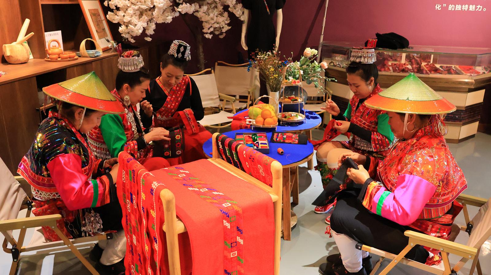 在即将到来的花街节上,将有数百人穿着这样的盛装参与巡游,带来“满城尽是花腰傣”的震撼演绎。游客也可以在市集租赁或购买,让刺绣不再只是被观看的图腾、纹样,而是可穿在身上的“活态文化”。