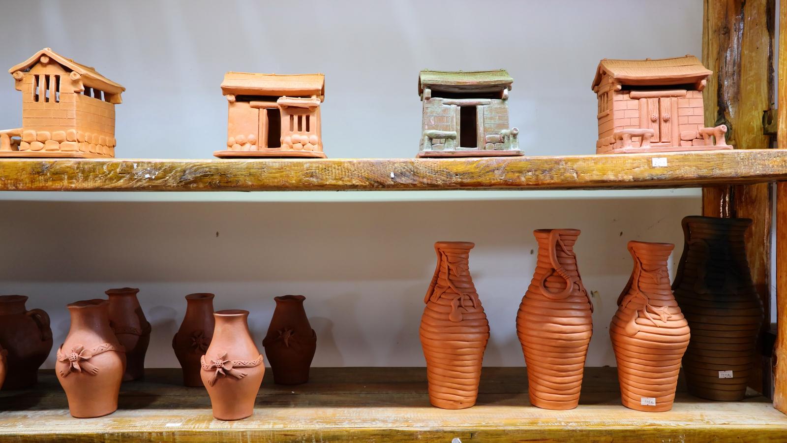 市级傣族传统制陶技艺非遗传承人刀正富介绍:“我们傣陶跟其他陶相比最主要的区别就是透气性好,原始的傣陶最主要是用作生活用具,煮饭、煮菜、煲汤等。随着文旅产业的发展,我们一直在搞创新,添加了很多我们花腰傣的元素。”